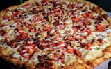 Garlic chicken, bacon crumbles, Canadian bacon & cooked tomatoes on our buttermilk ranch base with a drizzle of ranch on top.