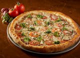 Roasted red & green peppers, fresh mushrooms, spinach, red onions, zucchini, black olives & chopped garlic.