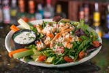 Fresh romaine with your choice of grilled or crispy buffalo chicken strips, bacon & parmesan topped with buffalo & bleu cheese dressing.